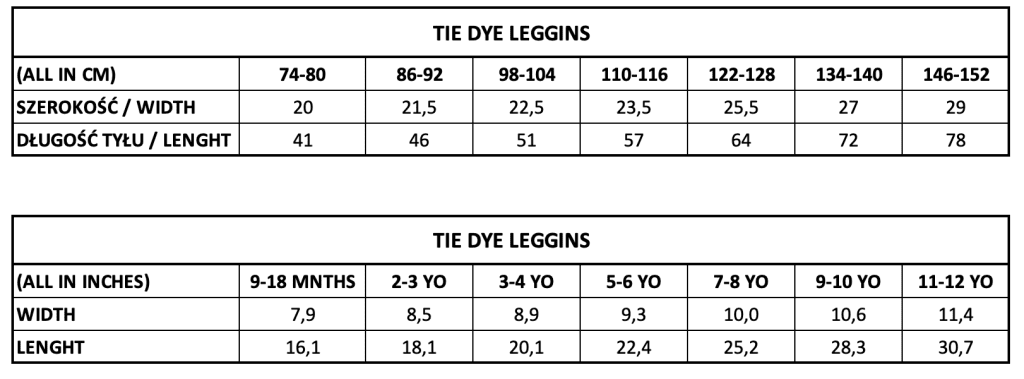 Bawełniane leginsy dziecięce ręcznie farbowane – każda para ma niepowtarzalny wzór. Zobacz na naszym instagramie, jak to jest zrobione.